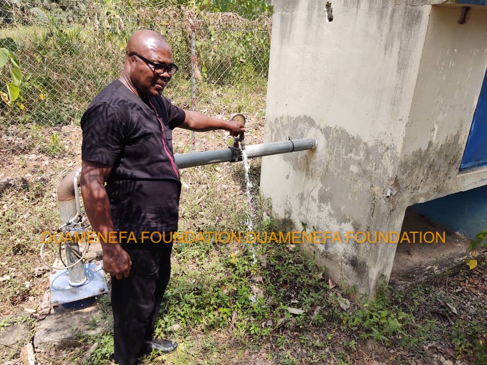This follows Duamenefa Foundations’ Social Intervention Programme on Fafaa FM that keenly followed the community’s water issue after the Assemblyman for the area, Hon. Patrick Melinawo Attipoe petitioned the Social Intervention crew to investigate and intervene to unravel the circumstances surrounding the refusal of the consultant, EDCON LTD to relinquish management of the project to the community.