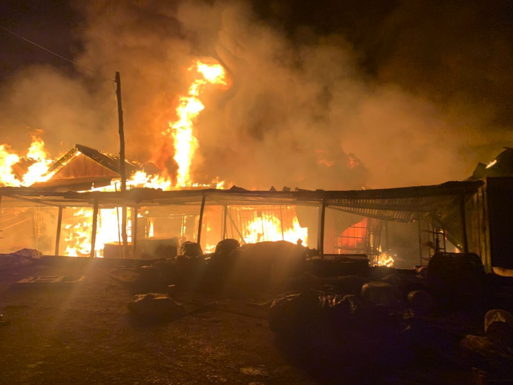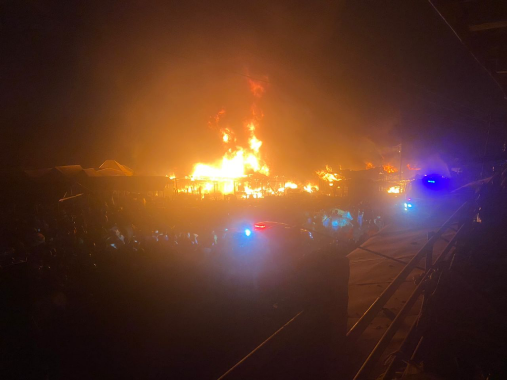 The inferno, which started around 9:15 PM, destroyed goods worth millions of cedis, with fire personnel struggling to contain the fast-spreading blaze.