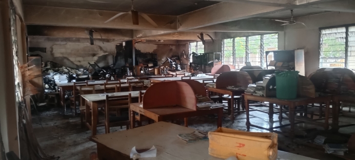 The school’s library was burnt, with almost all books and furniture destroyed.