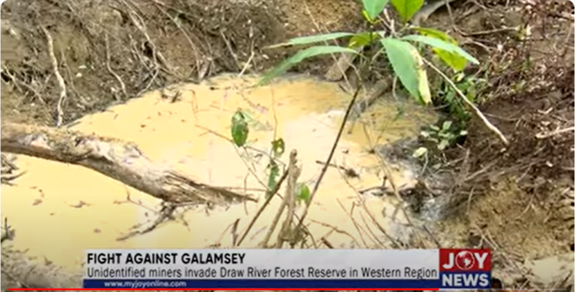 This follows a JoyNews report revealing that an unidentified miner has encroached on the Draw River Forest Reserve, one of Ghana’s key protected forests located in Gwira Banso in the Nzema East District of the Western Region.