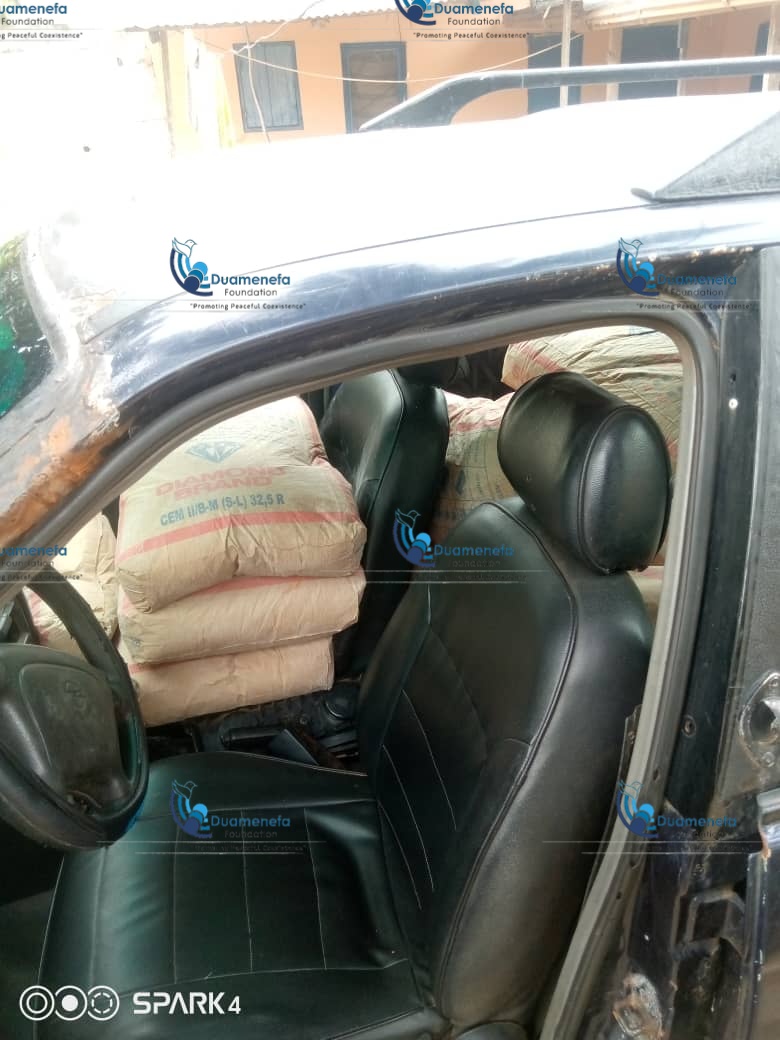 The alleged criminals, namely, Kugblenu Prince, aged 25 years, Wegbe Bright, aged 27, with the driver and one Mr. Elo Bleboo, the team leader, who allegedly said he will expose other members of the cartel if they dare arrest him. The criminals used an Opel Astra Saloon Taxi with registration Number AE 804 – 12 to steal the cement.