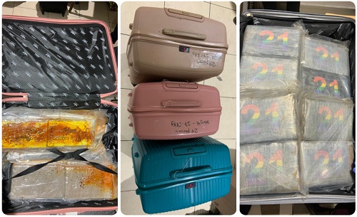 Similarly, Graham Omar Adel’s luggage also contained roughly 83.44 kilograms of suspected cocaine alongside his personal items.